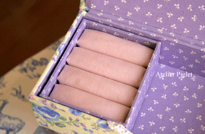 リングホルダーと底綿入りのトレーです。ピンクのモアレを裏返しに