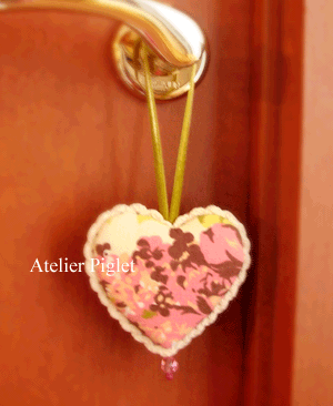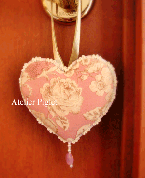 縁にはコットンレース、ハートの先っちょにはピンクの