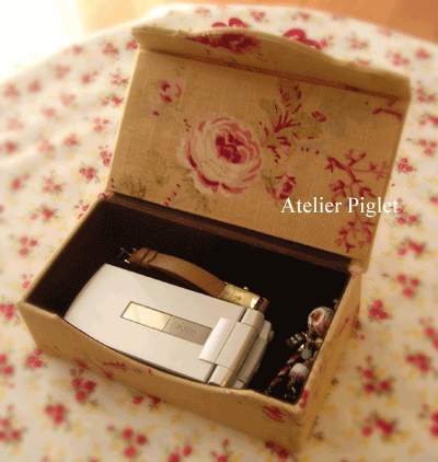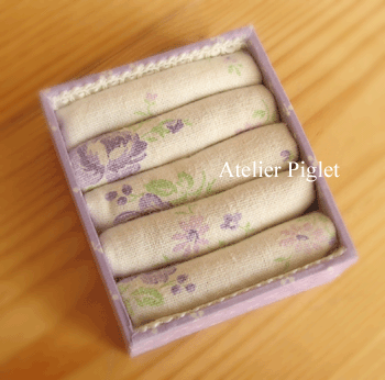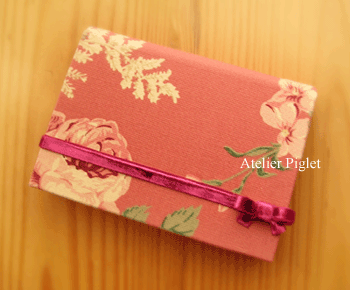 リバティ×ドット+ベルベットリボン。今回は蓋に綿をいれてみた!