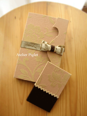 ビロードのリボンは柄が映えるよう今回は細めにしました。
