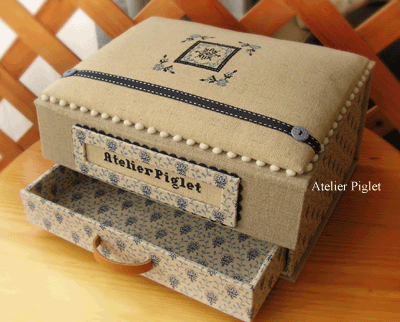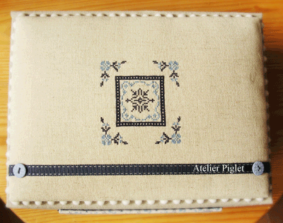 飾り蓋にはクロスステッチ(図案は"CARTONNAGE BRODE")